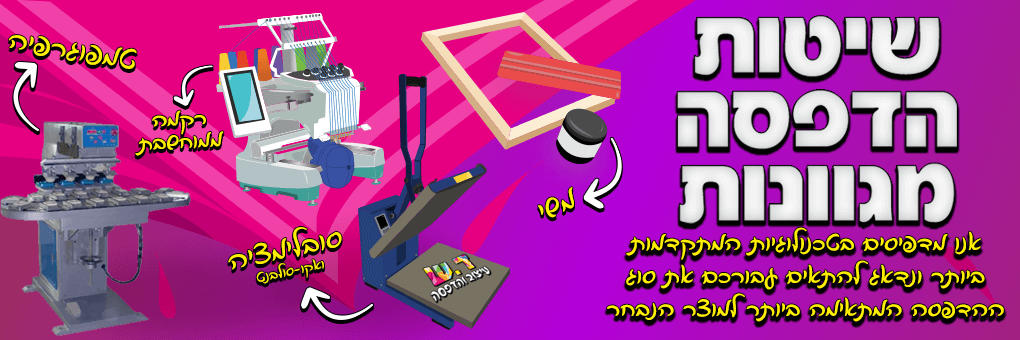סובלימציה, משי, דיגיטלי, DTF, רקמה, חריטה בלייזר טמפוגרפיה ועוד...